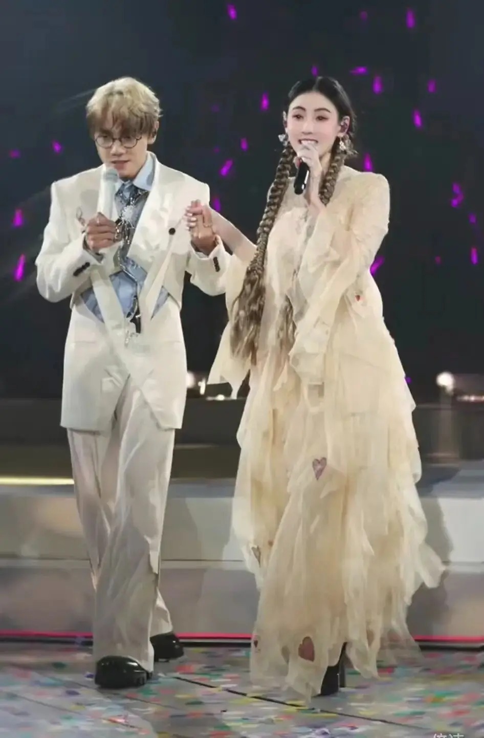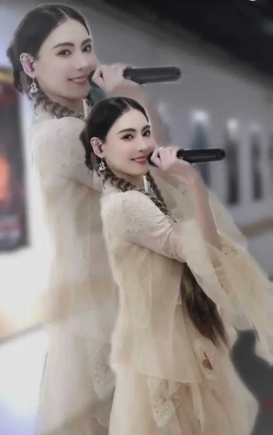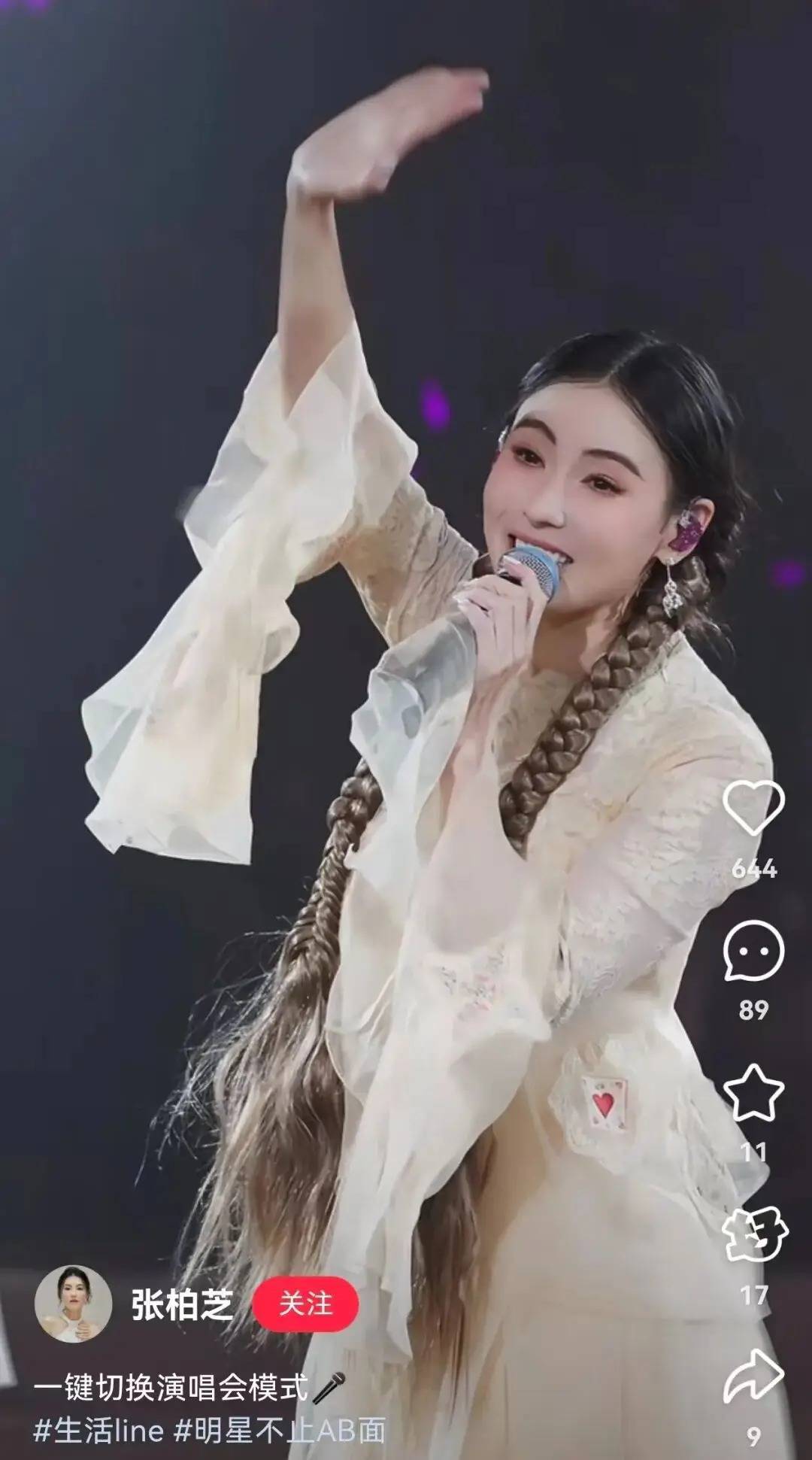 昨天,张柏芝现身好友林家谦的演唱会当嘉宾。视频中,她身着一袭黄色长裙,扎着麻花辫,与林家谦牵手合唱。